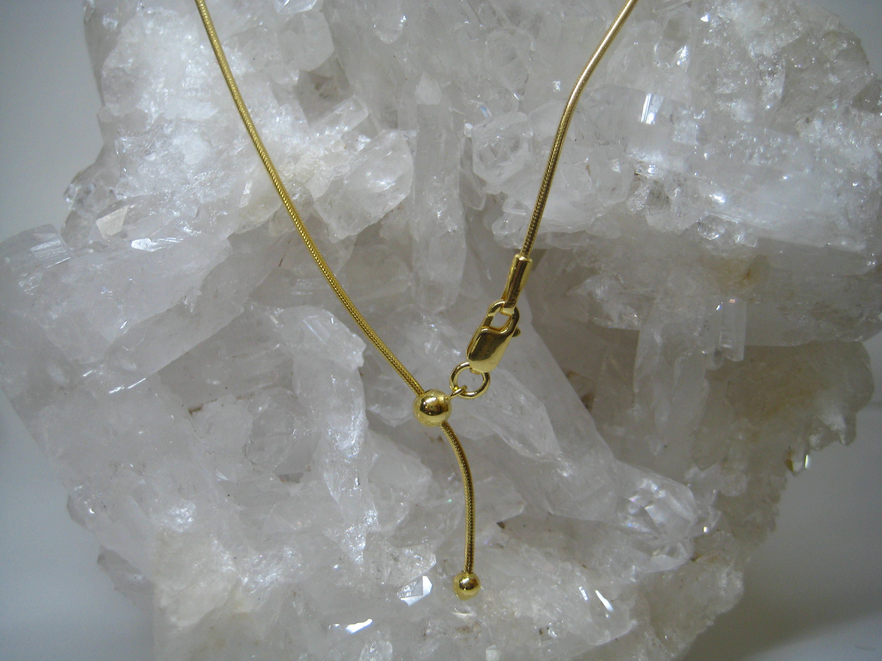 Halskette: 925 Sterling Silber vergoldet und 1,1 mm. Am Verschluss befindet sich eine Schiebekugel mit der du die Länge (bis max. 50 cm) anpassen kannst.