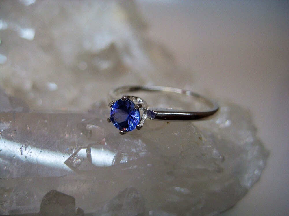 Blue Tanzanite Silver Ring - Real Tanzanite Jewelry - This dainty gemstone ring is classy, modern and beautiful. Tanzanite has AA quality with excellent brilliance. A great gift for women and girls. Tanzanite is a December birthstone.